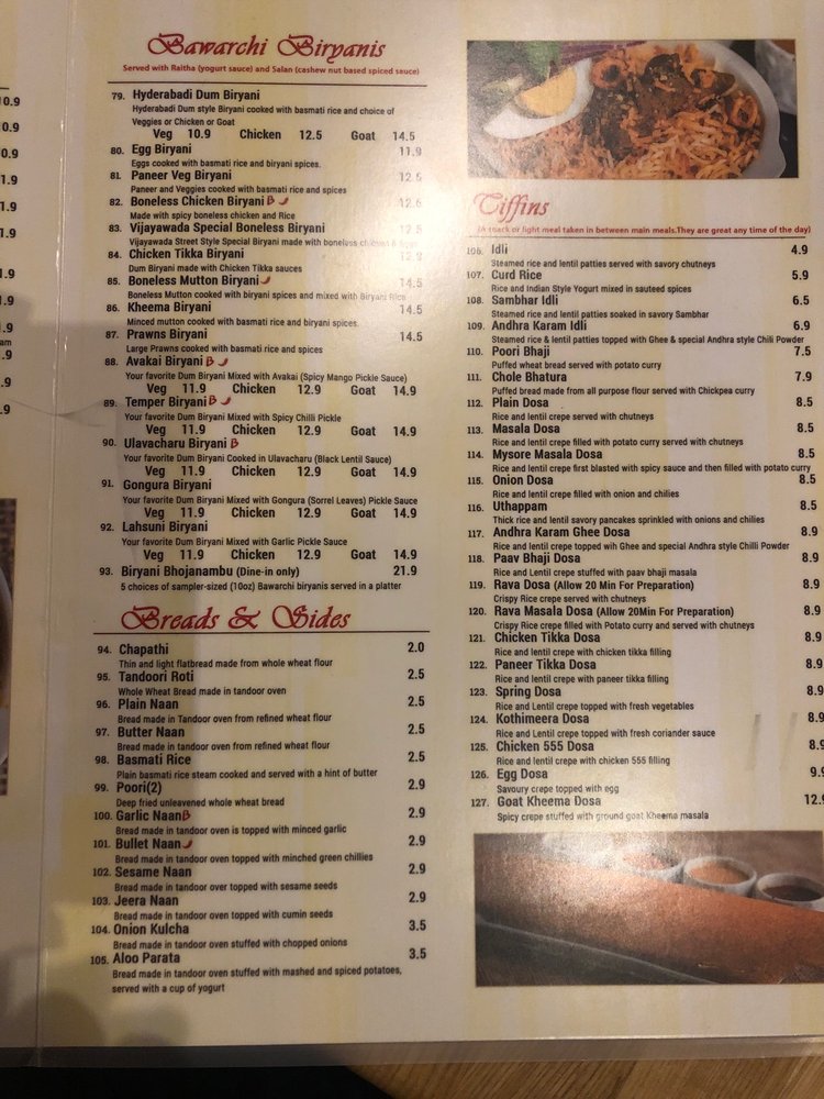 Bawarchi special biryanis cooked with basmati rice and special sauces. Choose from a variety of meats and proteins. Biryanis accompany 4oz raitha and 4oz salan.